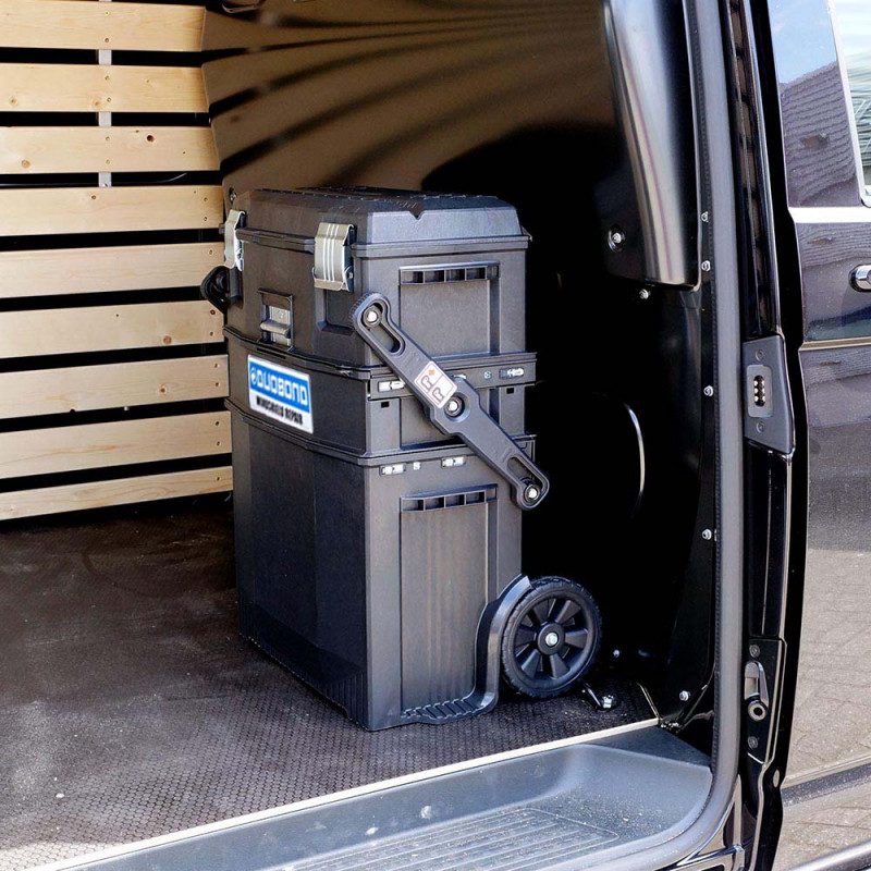 Professional mobile windshield repair trolley equipped with the Fixter repair bridge, Autorep, and a wireless rechargeable IQ-r LED UV lamp, all housed in a sturdy, dust-repellent 3-in-1 trolley