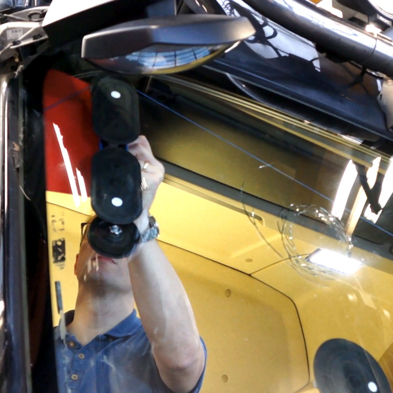 For vehicles with strongly curved windshields – such as trucks, buses, campers, and agricultural machines – a standard round suction cup is often insufficient. This double wire guide is specially developed to optimally guide the cutting wire even on strongly curved surfaces.
