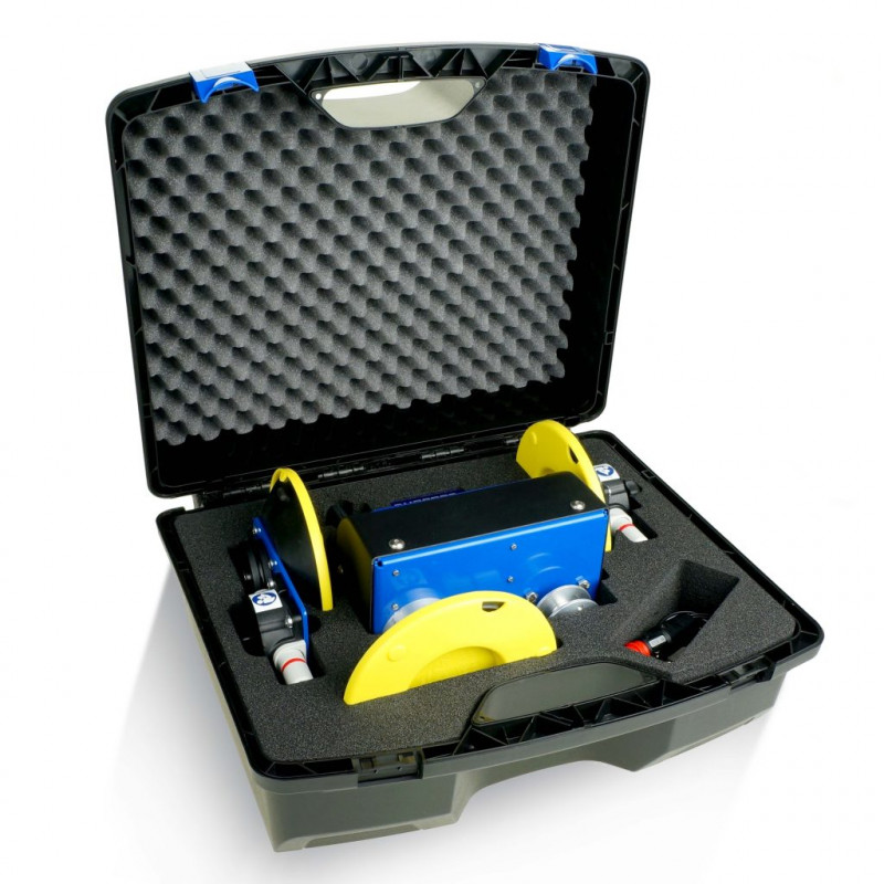 The set consists of two pulleys and two elongated suction cups (150 × 75mm), each with its own vacuum pump. Thanks to the elongated shape, the suction cups can follow the curvature of the glass without vacuum loss, keeping the wire guidance constant and minimizing the risk of wire breakage.