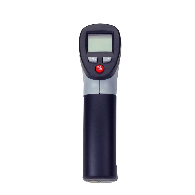 Handy infrared thermometer with pistol grip.