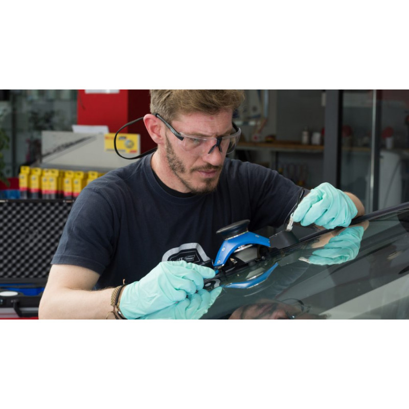 Gel for easy positioning of a windshield repair bridge on a windscreen for a complete seal on damaged/scratched glass. The gel is friendly to the rubber and prevents deterioration of the rubber.