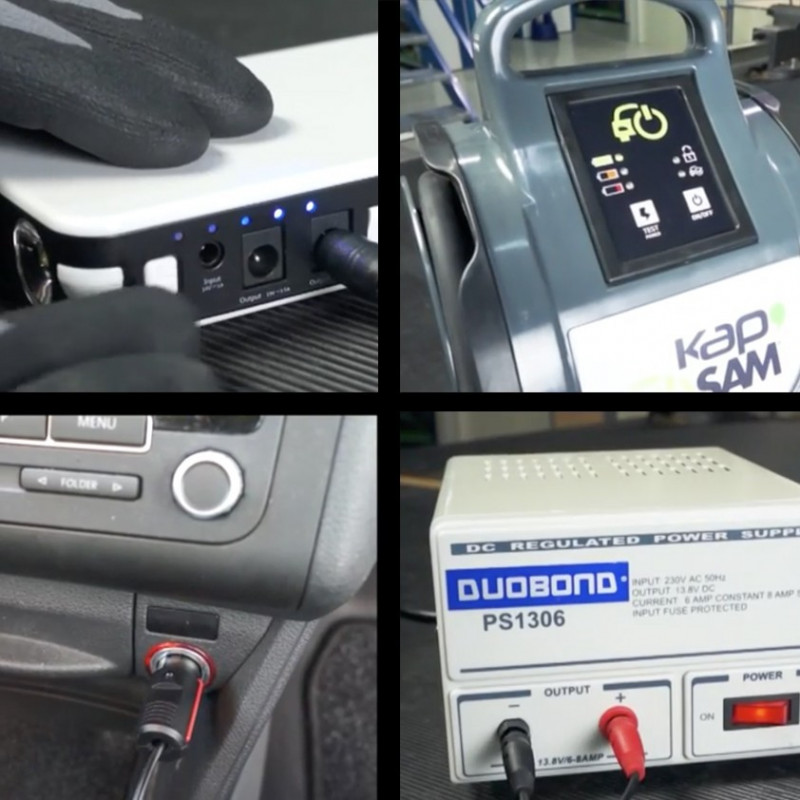 The connection cable with cigarette lighter socket, can power a 12 volt drill or a UV-lamp. Just connect it to the available powersuply and you are able to work within a 1,7 meter radius.