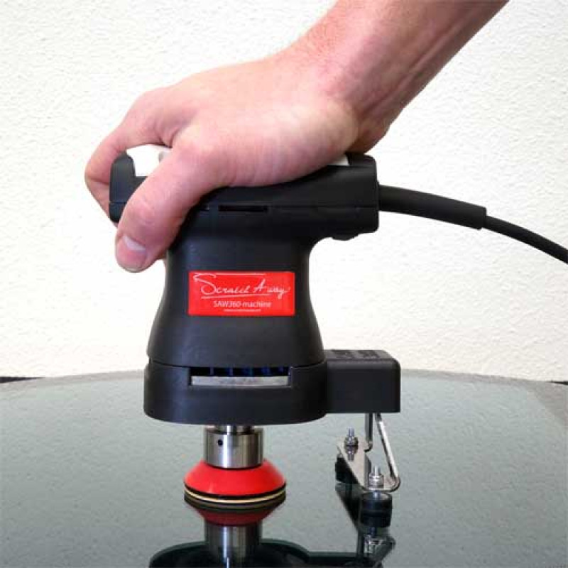 The polishing head of the SAW360 makes eccentric rotational movements that do not rub the polishing head over the window. As a result, unlike normal rotary machines, the chance of making ‘pig tails’ is minimal. These spiral breeds often occur when a normally rotating polishing head is not fully placed on the window and turns sideways over the glass surface. This exlcusive device is more compact and convenient, a very easy-to-use glass polisher.